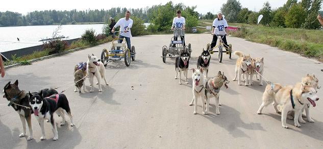 A hírességek teljes komolysággal készültek a megmérettetésre. A dunaharaszti pályán közös bemelegítést tartottak, miután látták, hogy a kerekeken guruló profi szánok, a kutyákkal az élükön, irgalmatlan sebességű iramra képesek.