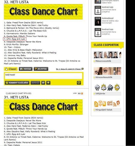Harmadik hete egyedüli magyar előadóként az UFO együttes „Égig érő nyár” című dala igen előkelő helyen szerepel a Class FM Class Dance Chart listáján. A Kovács Áron által vezetett műsorban az UFO új szerzeménye a 10. helyen kezdett, 2 hete pedig a 7.helyen szerepel.
