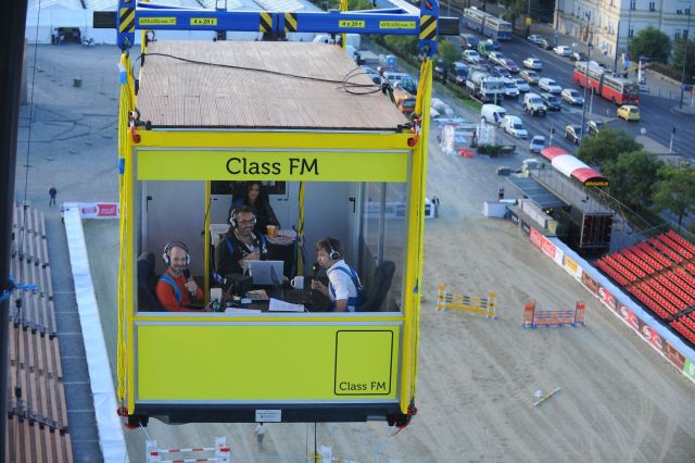 50 méteres szédítő magasság, egy impozáns, levegőben himbálózó stúdiókonténer, óriási tömeg, és sápadt rádiósok: elérkezett a nagy nap, Sebestyén Balázs, Rákóczi Feri és Vadon Jani együtt meghódította a levegőt! A Class FM reggeli show-jának műsorvezetői kezdeti félelmüket legyőzve pályafutásuk legnagyobb dobását hajtották végre, s egyúttal új fejezetet is nyitottak a hazai médiatörténetben.