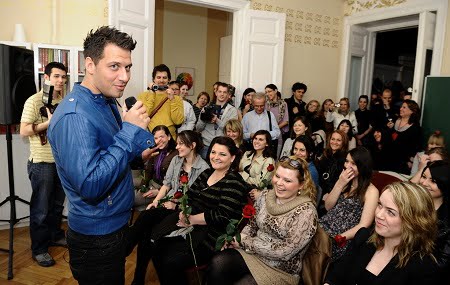 „Nagyon bántott, hogy a betegségem miatt nőnapon nem tudtam itt lenni és kedveskedni a hölgyeknek. Remélem, hogy ma sikerült kárpótolnom őket. Biztos, hogy a mai nap után is örömmel maradok a női nem nagy tisztelője, hiszen jó volt látni ennyi szép lányt egy helyen.” – árulta el a jól ismert csibészes mosolyával az arcán az énekes, aki nemrég felismerte, hogy változtatnia kell életmódján, ha bírni akarja a rengeteg fellépéssel járó megpróbáltatásokat, ezért csatlakozott az egyik legnagyobb ebéd házhozszállítócég zsírégető klubjához, ahonnan egészséges ételeket kap.