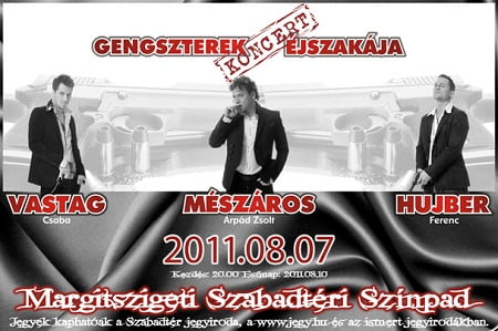A Margitszigeti Szabadtéri Színpad egy chicagói börtönné alakul át, ahol három kőkemény gengszter ül egy cellában… Idén MÁZS a hölgy rajongóinak két jóképű sztárt, két nagyon jó barátját invitálta fellépőnek koncertjére Vastag Csaba és Hujber Ferenc személyében. A három előadó rosszfiúvá alakul át egy estére és egy igazi gengszter show-t láthatunk.