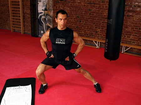 Állj a talajon, tág terpeszben, majd hajlítsd be az egyik lábad úgy, mintha guggolnál, míg a másik lábad merev legyen. Ha leereszkedtél, nyomd vissza magad a behajlított lábadból, aztán válts. 16-szor ismételd, mindkét lábad esetében, külön-külön.