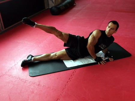 Feküdj a talajon, féloldalt, kezeiddel támaszd meg magad. Lábaid nyújtsd egyenesre, lábfejeid feszítsd előre. Míg az alól lévő lábad a talajon marad, a másikat emeld mereven a magasba, aztán hozd vissza a kiinduló helyzetbe. 16-szor ismételd, majd fordulj a másik feledre, és másik lábaddal is végezd el a gyakorlatot ugyan ennyiszer.