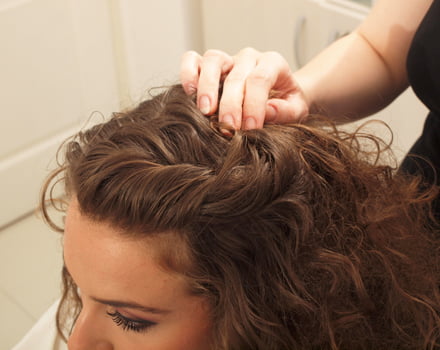 Ha éppen időhiányában vagy, könnyen alakíthatod át a hétköznapi hajviseleted vadító esti frizurává! Kezdd azzal, hogy válaszd el a füled fölötti hajréteget a többitől, fogd fel egy csattal, majd a szabadon maradt tincseket egyenként ragadd meg a végektől, és huzigáld őket felfelé, a tövek irányába. Megfigyelheted, hogy a technika volument kölcsönöz a hajkoronádnak, így a mozdulatot a feltűzött réteggel is megismételheted, amennyiben bozontosabb frizurát szeretnél.