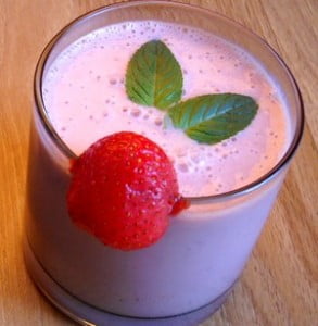 5. Gyümölcsös ital – kell hozzá 1 marék mandula (előre puhítva), bármilyen kedvenc gyümölcs (eper, málna, szeder, áfonya, mangó, ananász, stb.), víz, esetleg kis méz.