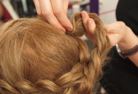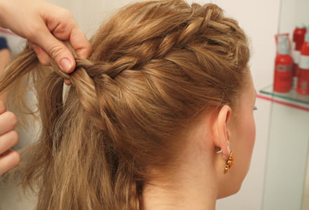 Amikor majdnem a tarkódhoz érsz, igyekezz mind bevonni a lelógó tincseket a fonatba úgy, hogy közben elkanyarodsz a másik füled irányába.