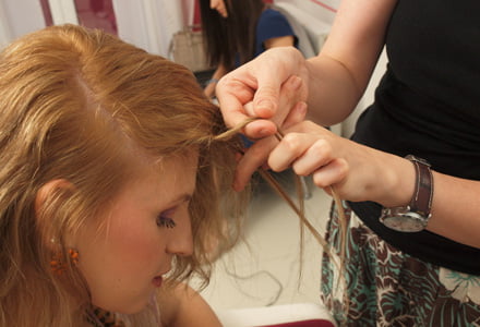 Válaszd el a hajad néhány centiméterrel a jobb füled fölött. Fújj rá hullámosító hajsprayt!