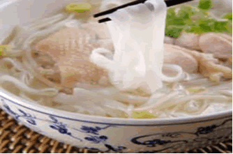 A megfőtt rizstésztát osszuk el a leveses tálakban, majd erre kerül a csirkehús, végül merjük rá a levest. Babcsírával, mentával és korianderrel megszórva tálaljuk.